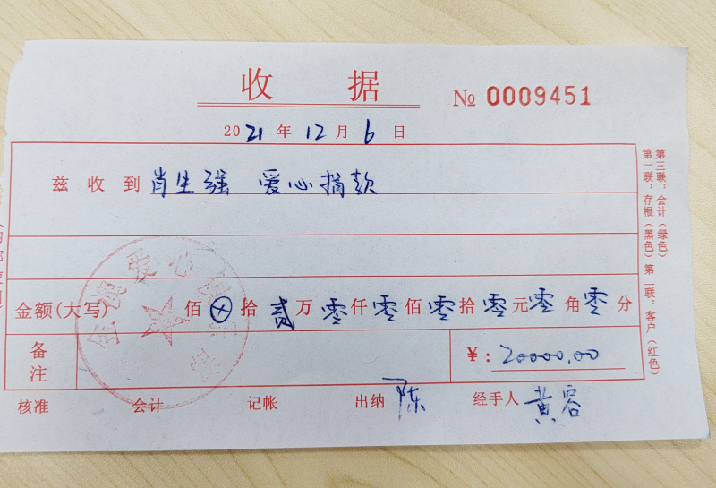 12月6日,湖北省优秀共产党员、金年会app下载官网ios党委书记、轮值总裁肖生强同志将2万元奖金全额捐赠给金年会app下载官网ios爱心俱乐部,这笔温暖人心的爱心捐款,代表了他作为全省优秀共产党员坚守初心、传递爱心的大爱精神。