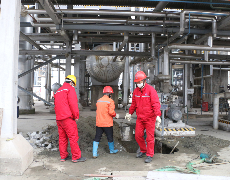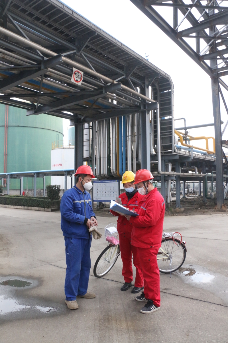 党员、安全环保处处长胡云组织检查各车间操作作业票执行情况,现场抽查员工操作步骤执行情况。