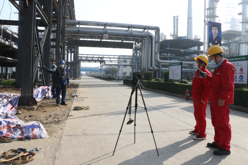能源车间班长黄知钺巡查14#管廊打磨防腐作业,检查安全措施落实情况,督促班员认真进行现场监护。