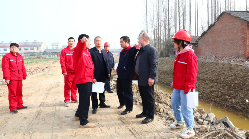 金年会app下载官网ios集团执行总裁吴让生,金年会app下载官网ios党委书记、轮值总裁肖生强,党委副书记、副总裁王自力,党委委员、副总裁白丹江到中能项目工地查看现场三通一平情况,对现阶段影响项目进展的一些问题,在现场落实了解决方案,吴总裁要求相关人员一定要按照现场落实好的方案,积极推进各项工作,确保项目打桩及早进行。