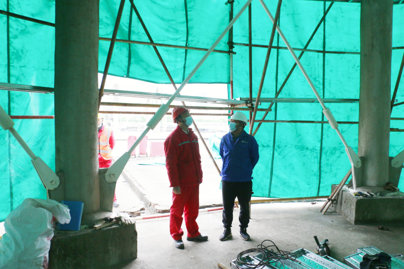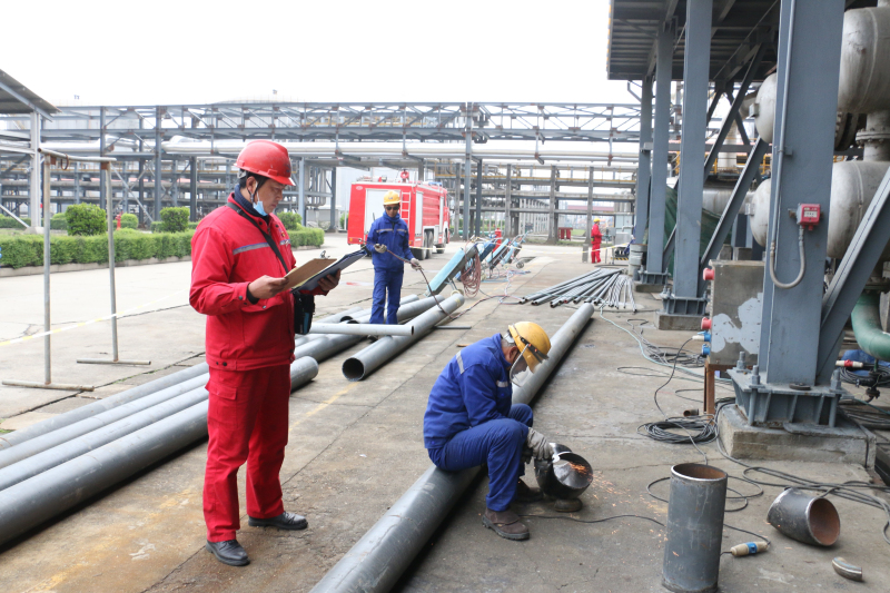 党员、总裁助理郑经友现场了解气分车间球罐焊缝打磨施工情况,督促施工方规范作业,保障球罐检定进度。