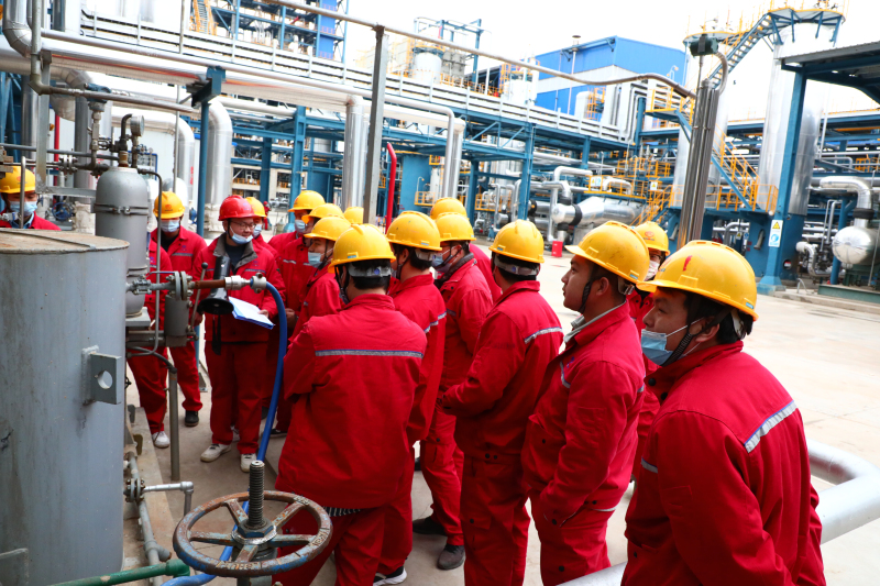 炼化党支部委员、副总经理邵清平现场监护柴油冷却器工艺变更改造施工,严格落实各项安全措施。