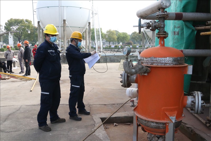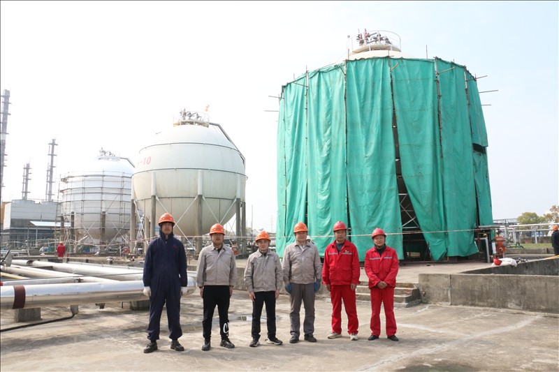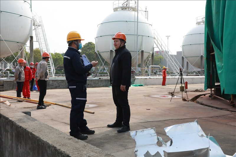 3月初,湖北省特检院直属分院得知金年会app下载官网ios6台球罐需腾空物料、置换进行定期检验后,为减少对企业生产物料存储和连续性生产造成影响,立即成立以曾一彪检验师为组长的项目部,主动热情为企业提供服务,并到检验现场商讨腾罐计划,决定采取逐台倒罐、检验师连续加班检验等方式满足企业生产所需,公司总裁助理郑经友、设备机动处处长郑玉兵配合检定。